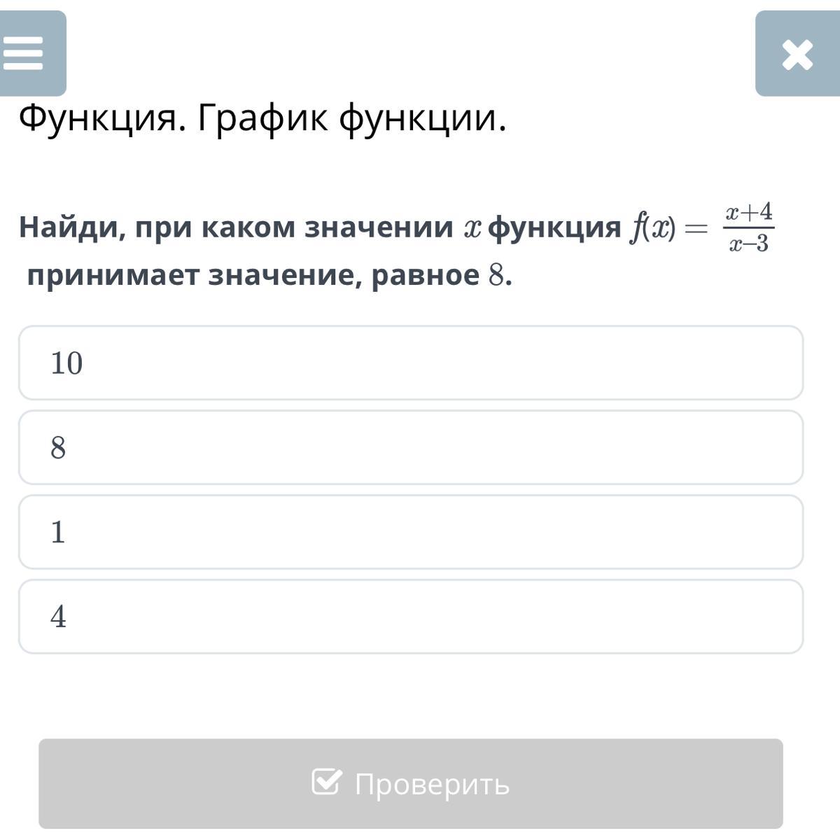 Найди, при каком значении х функция f(х) = х+4/х-3 принимает значение, равное 8.ПОМОГИТЕЕЕ ПОЖАЛУЙСТА!!!!СРОЧНО НАДО