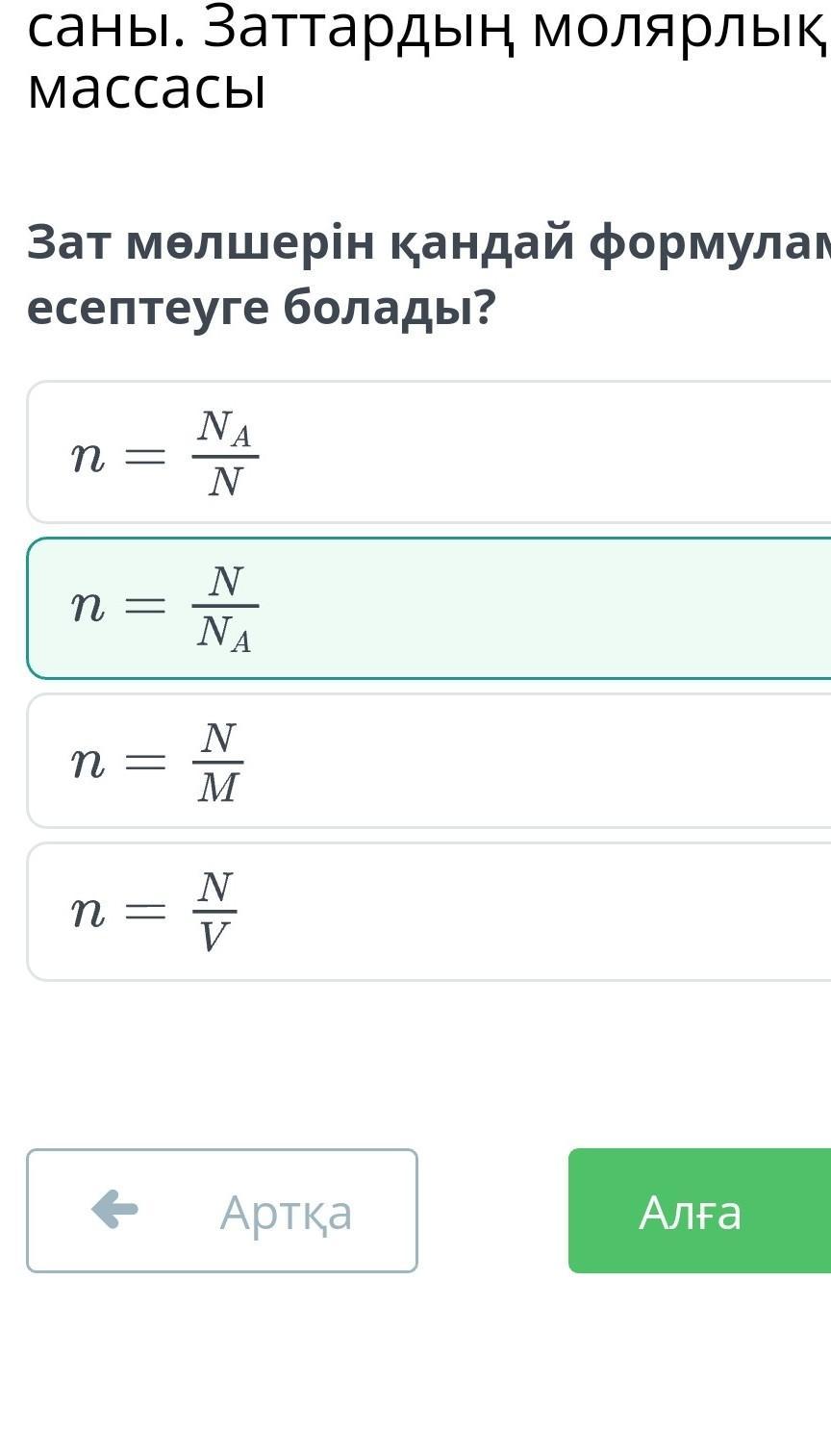 Зат мөлшерін қандай формуламен есептеуге болады?