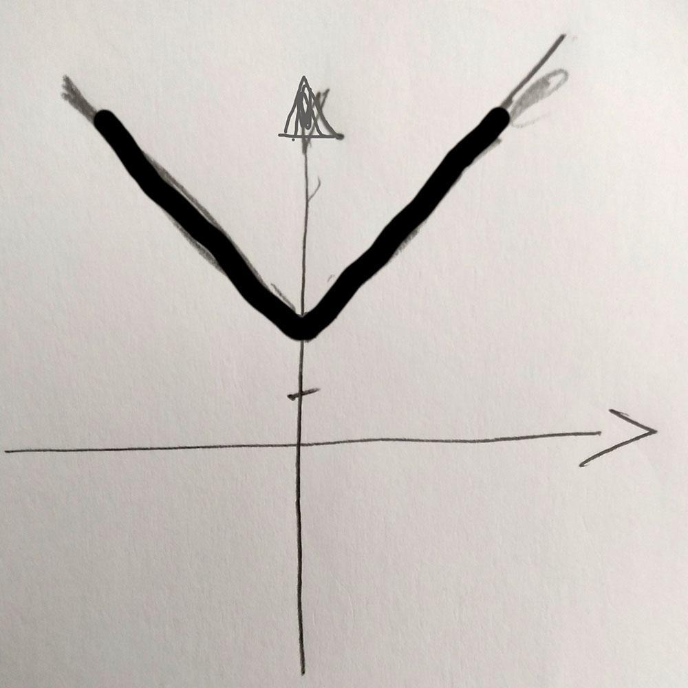слева прямая ОПУСКАЕТСЯ ПОД УГЛОМ 45° ,а справа поднимается под углом 45°