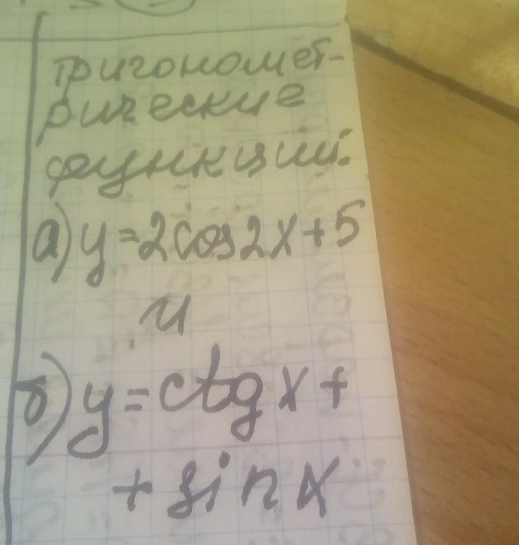 1. Среди перечисленных функций укажите тригонометрические: а) у = 2cos 2х + 5; б) у = ctg x + sin x