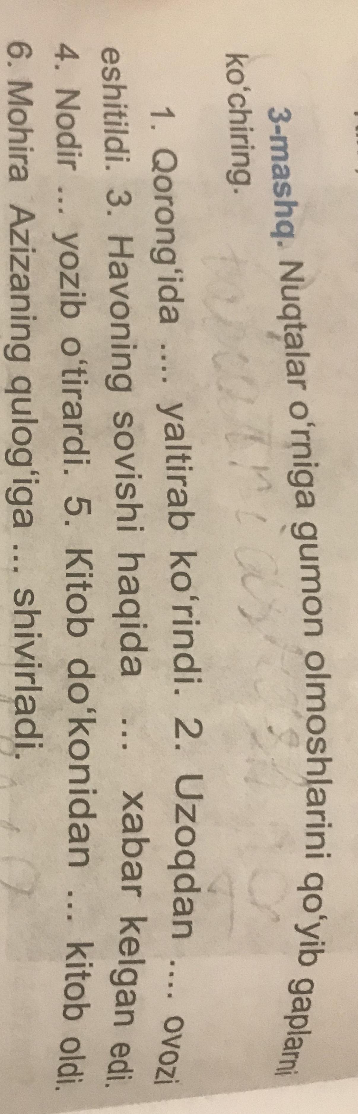 1.nimadir,2.nimaningdir, 3.qandaydir, 4.nimalarnidir, 5.qandaydir, 6.nimadir.