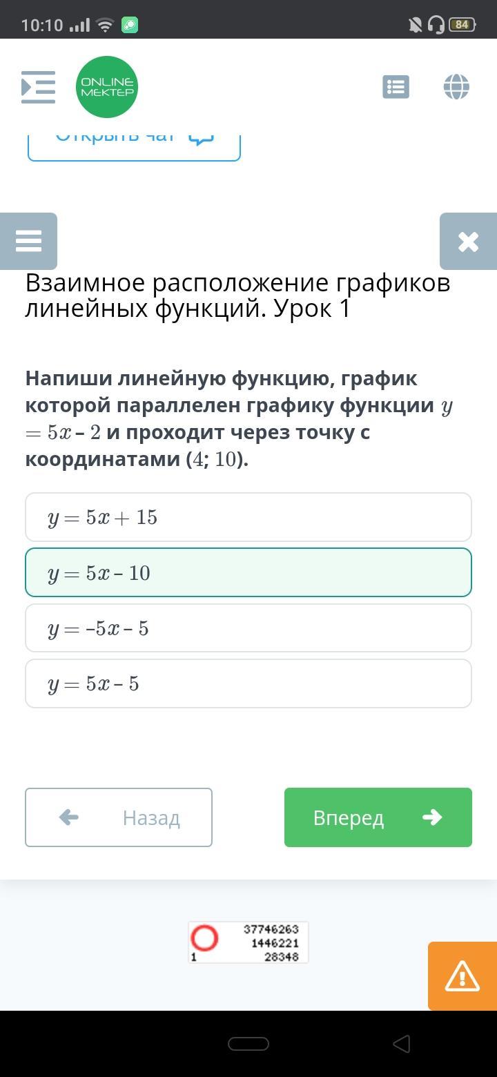 функции y = 5x - 2 и проходит через точку с координатами (4; 10).