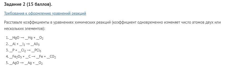 Требования к оформлению уравнений реакций