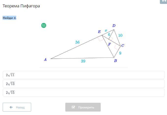 ΔDFE - прямоугольный, по теореме Пифагора: