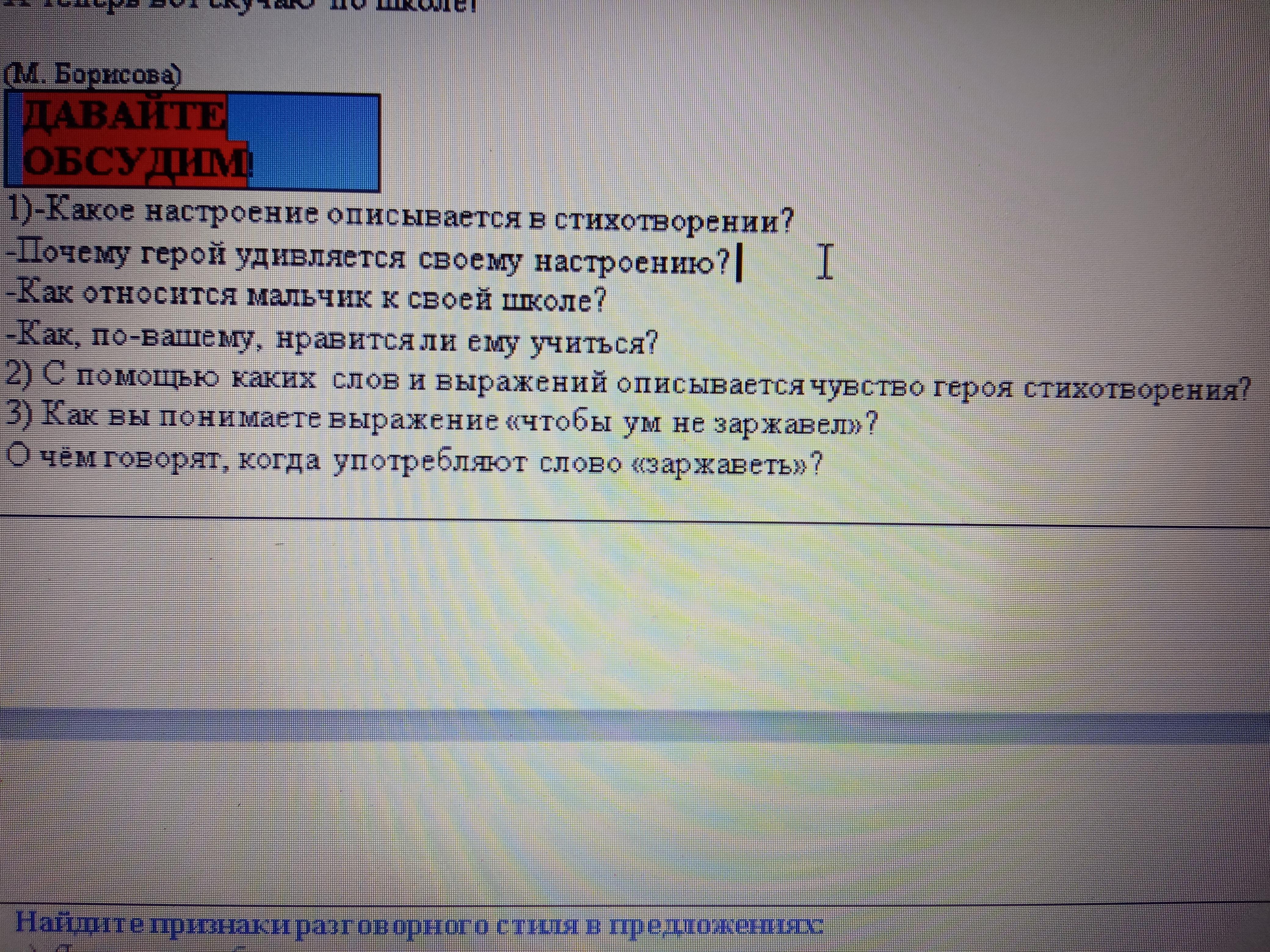 Объяснение: мальчик хотел в школу, скучал по ней, я ему наверное нравится учиться, слова: драница, сам понимаю, дошкольник, чудеса, я ум не Заржавел значит надо учиться чтобы совсем не отстать от школы заржаветь значит стать глупым, отстать