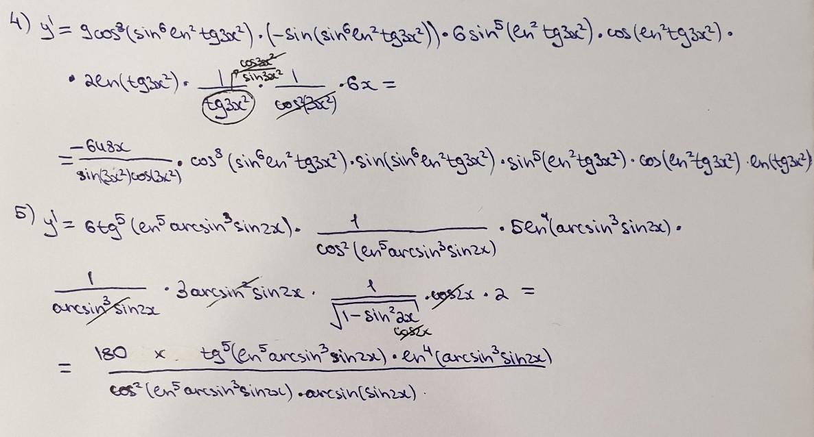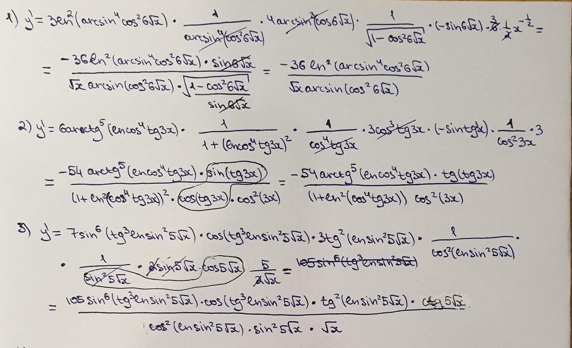 Нужно внимательно дифференцировать каждую функцию внутри функции