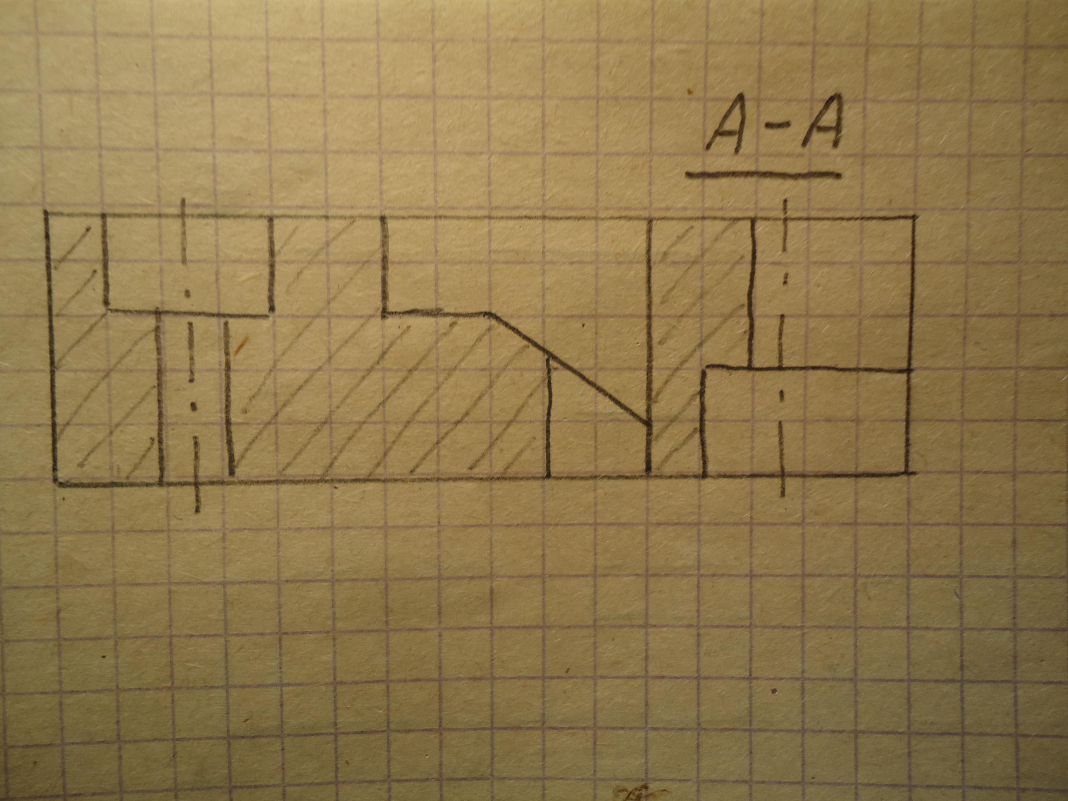 Нужно в первом сделать следующее : на месте одного из видов выполнить сложный ступенчатый разрез. Вид, на котором обозначена секущая плоскость (плоскость разреза А-А) оставить без изменений, А ВТОРОЙ ВИД ЗАМЕНИТЬ РАЗРЕЗОМ