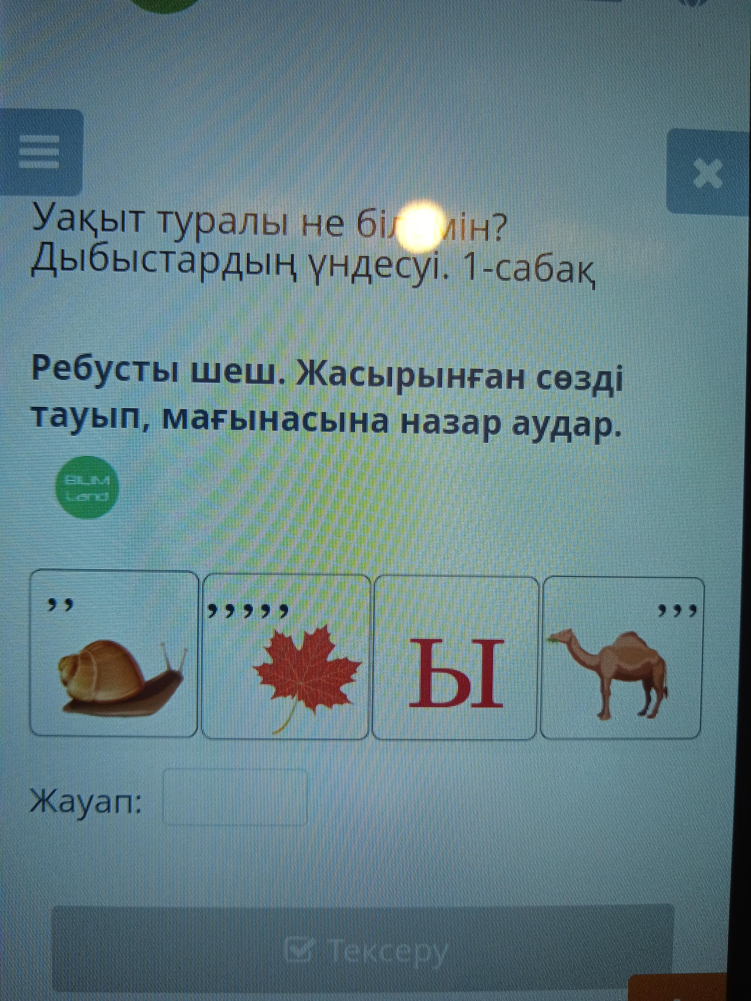 Ребусты шеш. Жасырынған сөзді тауып, мағнасына назар аудар.