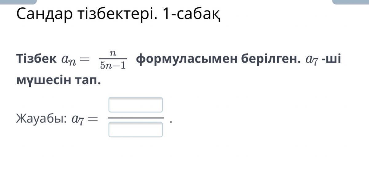 a_{n}=\dfrac{n}{5n-1}\\\\\\a_7=\dfrac{7}{5\cdot 7-1}=\dfrac{7}{34}