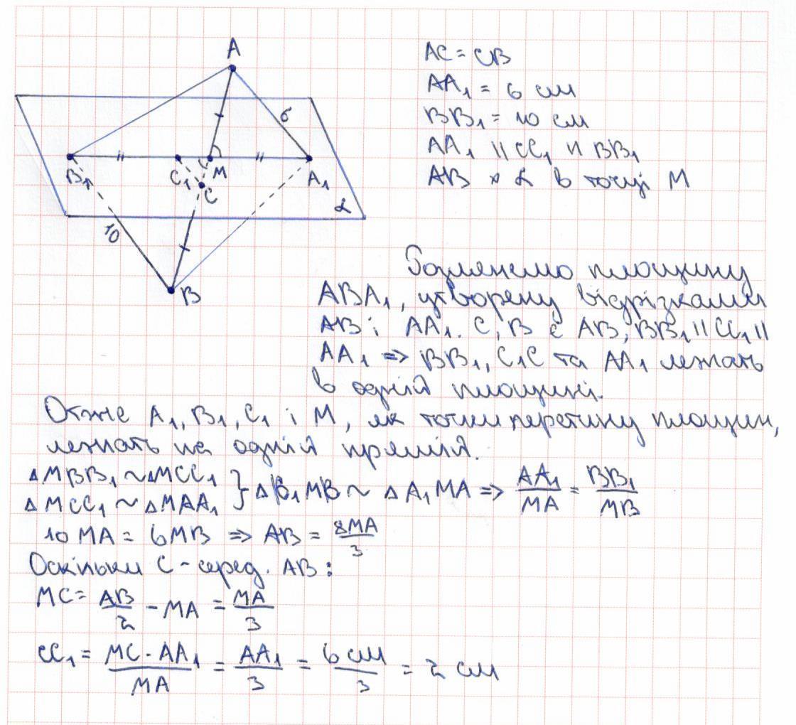 2) Знайдіть СС1, Якщо АА1= 6 см, ВВ1= 10 см.