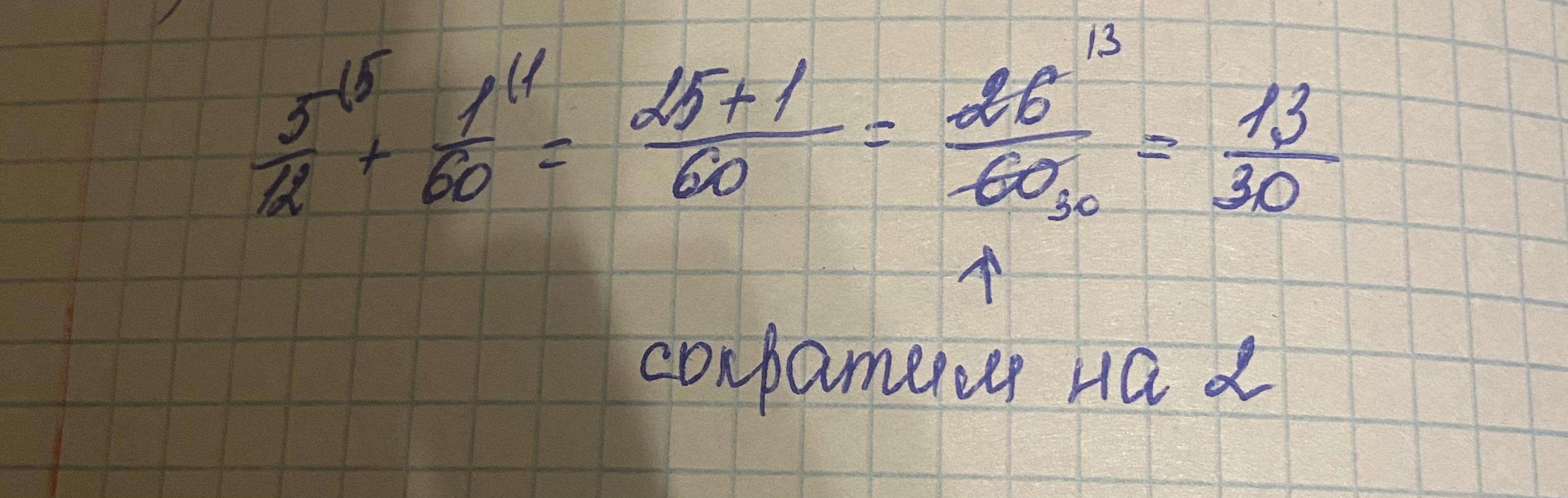 5/12 + 1/60 = ( 5 × 5 + 1) / 60 = 26/60 = 13/30.