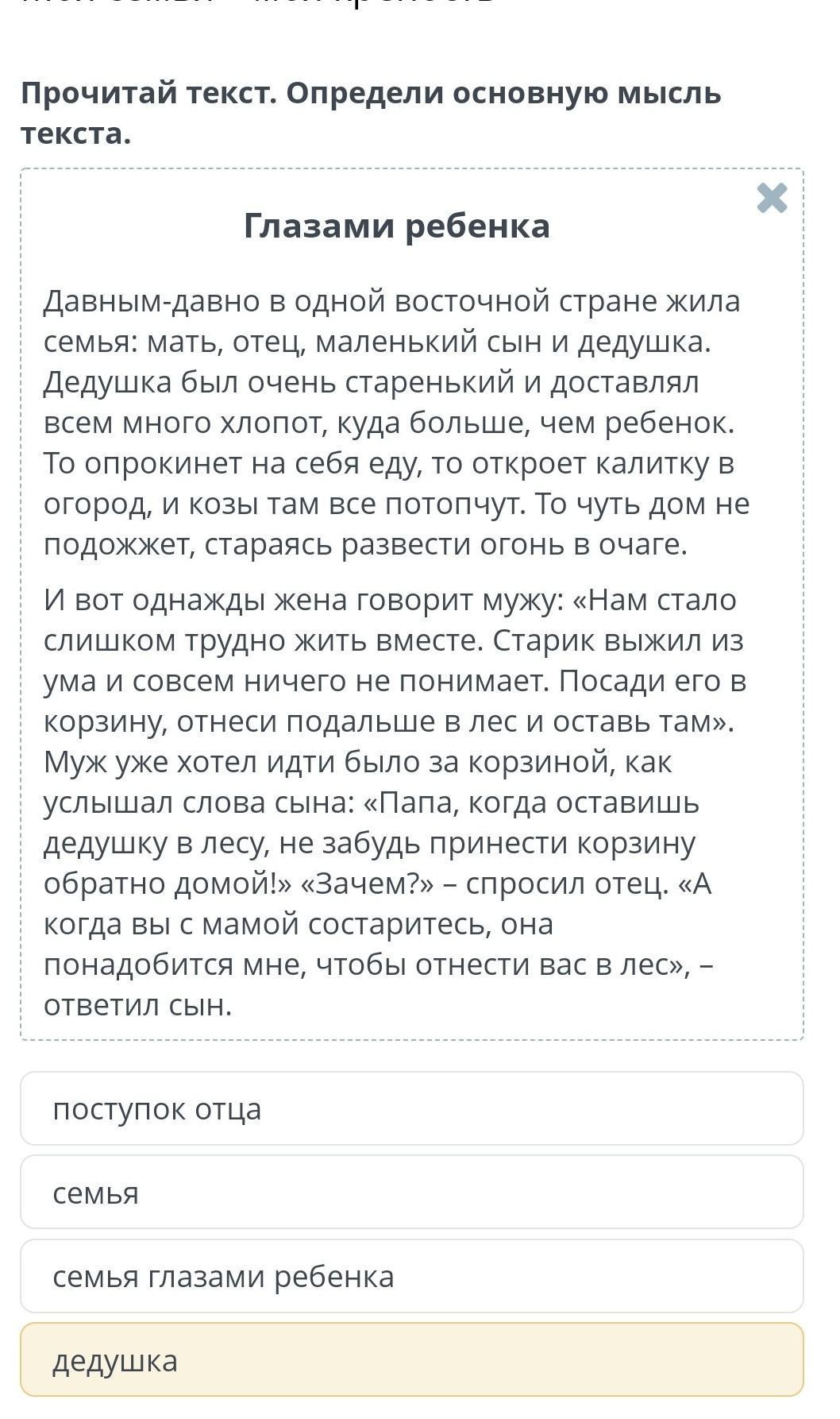 так как он видел что отец положил дедушку в корзину и собирается отнести в лес