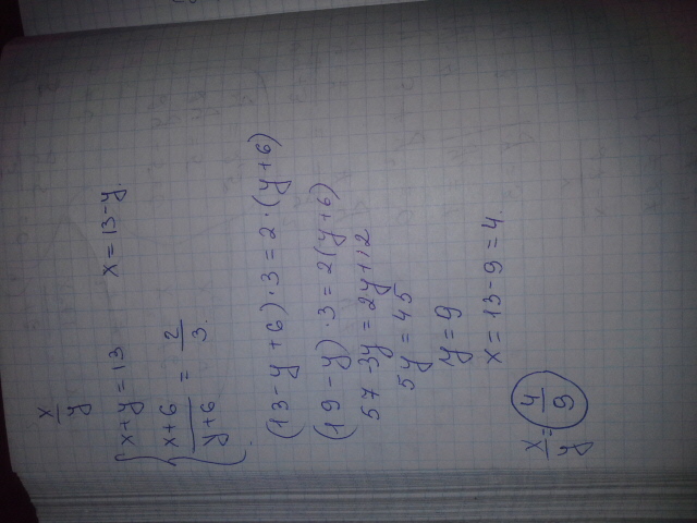 Сумма числителя и знаменателя правильной дроби равна 13. Если к членам дроби прибавить 6, то получим дробь равную 2/3. Найти эту дробь.