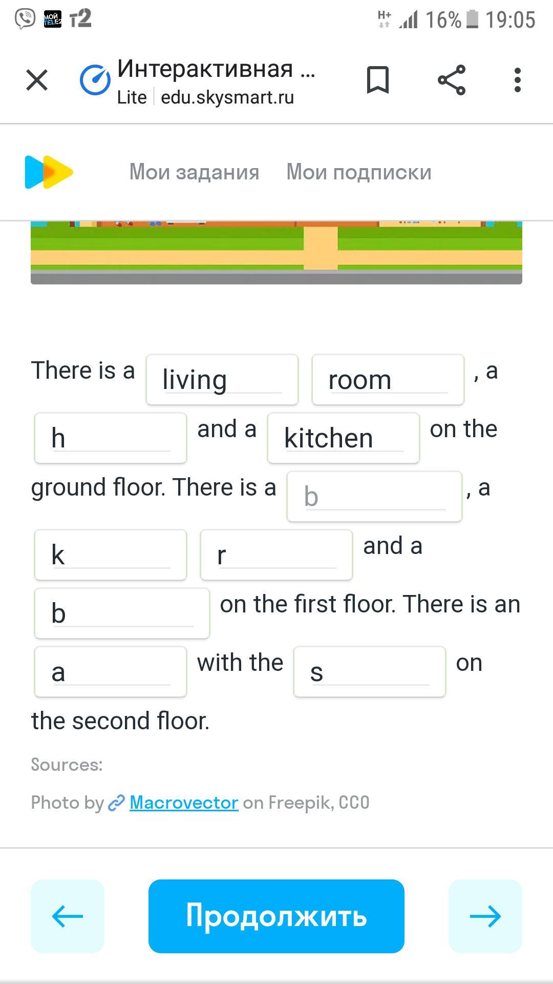 There is a living room, a hall and a kitchen on the ground floor. There is a bathroom, a kid's room and a bedroom on the first floor.There is an attic with the sofa on the second floor.