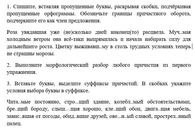 Роза, | увядавшая уже несколько дней |, наконец-то расцвела. (Подчёркивать все причастные обороты нужно волнистой линией, потому что они определения). | Мучимая холодным ветром | она всё-таки выпрямилась и начала набирать силу для дальнейшего роста. Цветку, | выживавшему в столь трудных условиях |, теперь не страшны морозы.