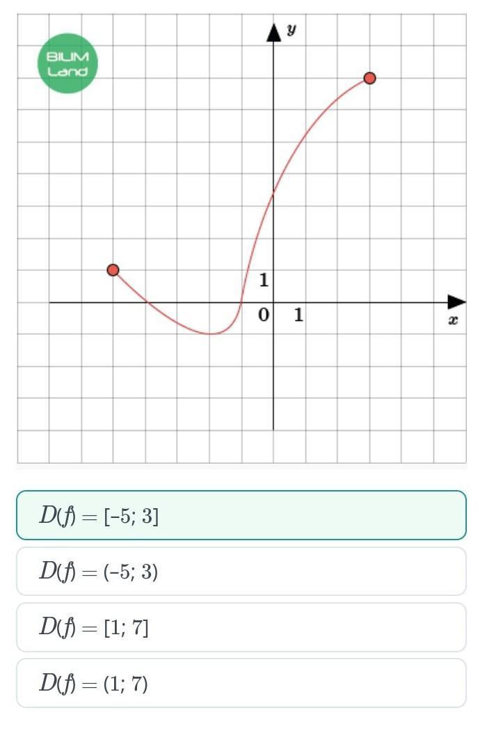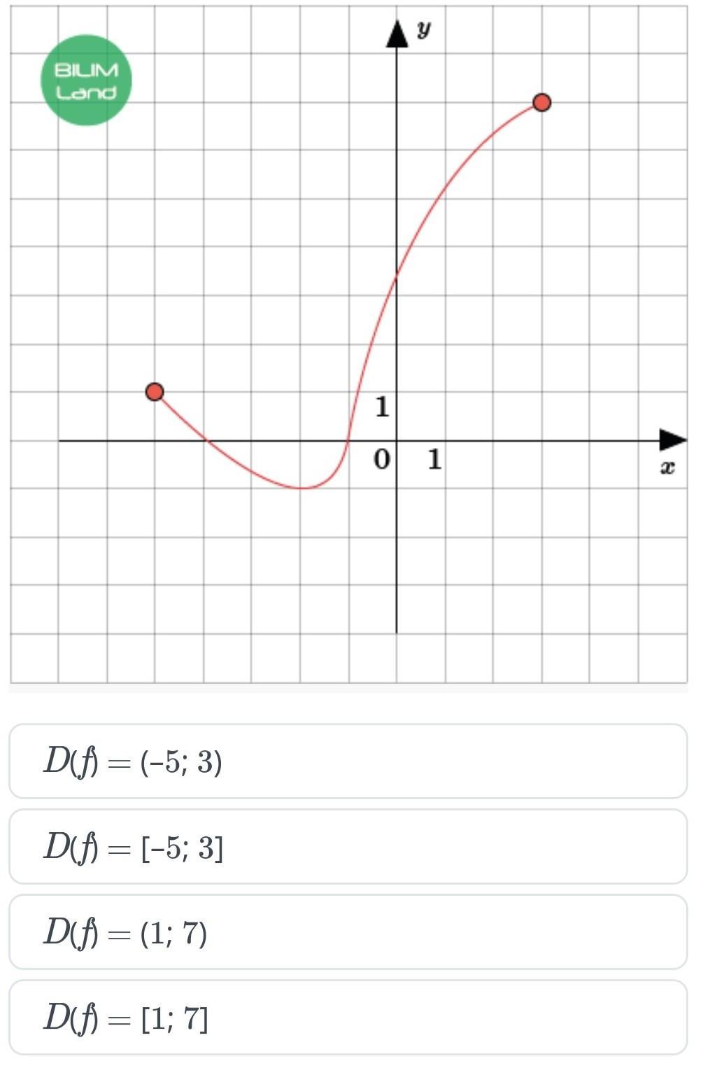 На рисунке показан график функции y = f (x). Используя график, найдите область определения данной функции.