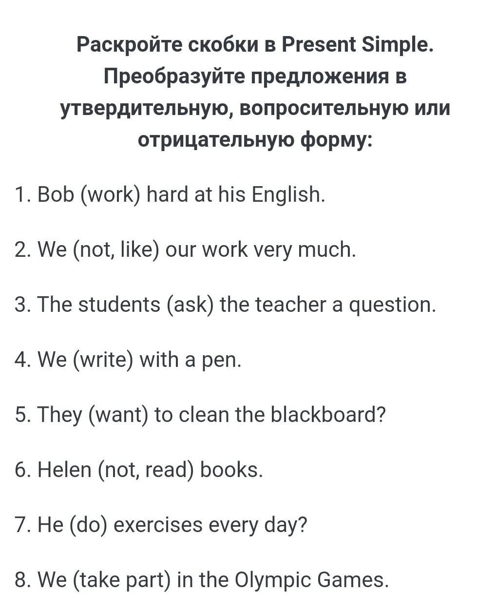 Помогите, сделайте в отрицательной, вопросительной и утверлиьельной форме, пожалуйста срочно