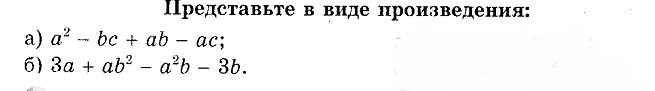 В)a^2-bc+ab-ac=a(a-c)+b(a-c)=(a+b)(a-c) Г)3a+ab^2-a^2b-3b=a(3-ab)-b(3-ab)=(a-b)(3-ab)Вас заинтересует