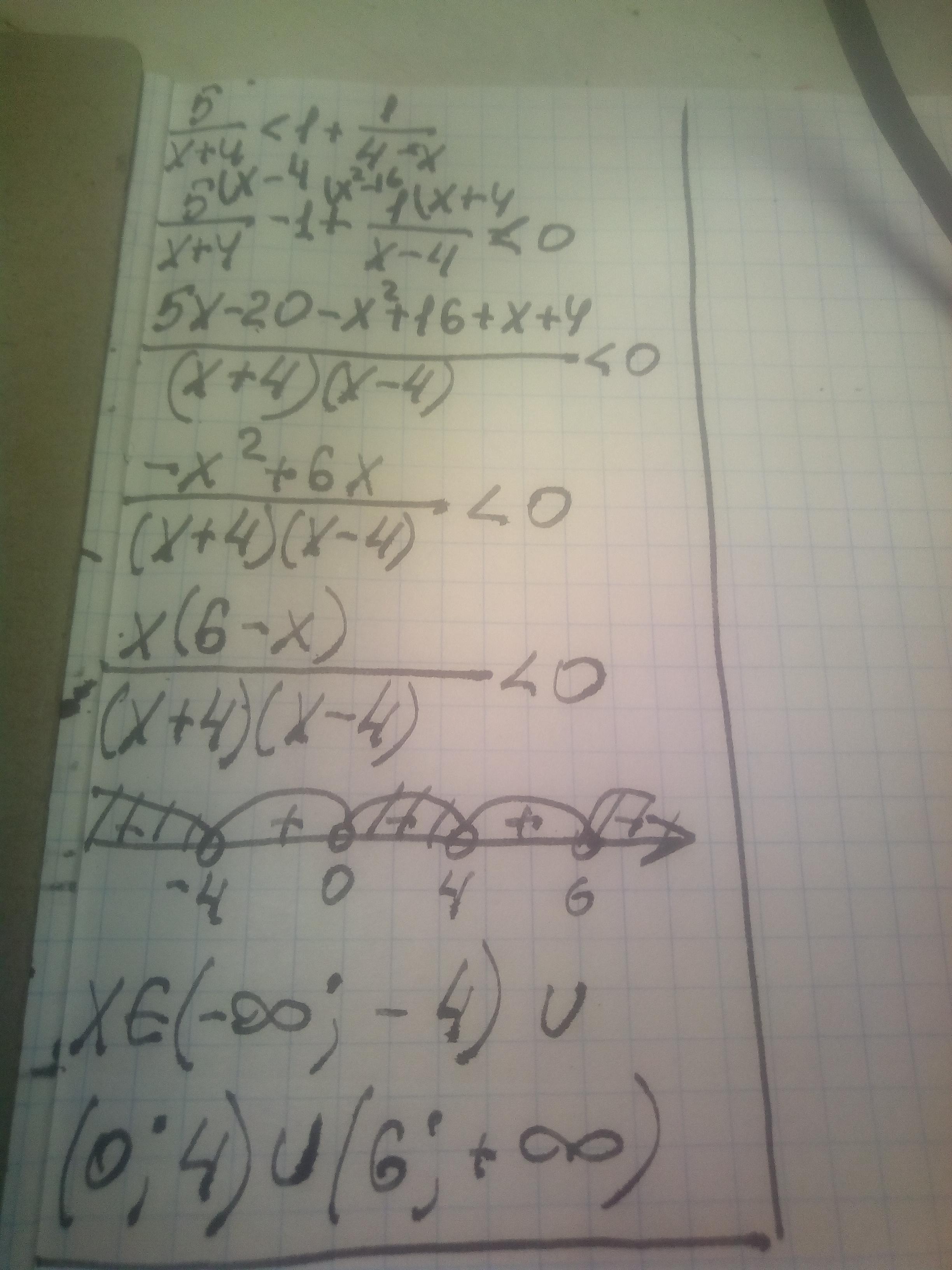 Там в третьем действии вроде ошибка. Первую дробь надо же на x-4 умножить, а не на х+4