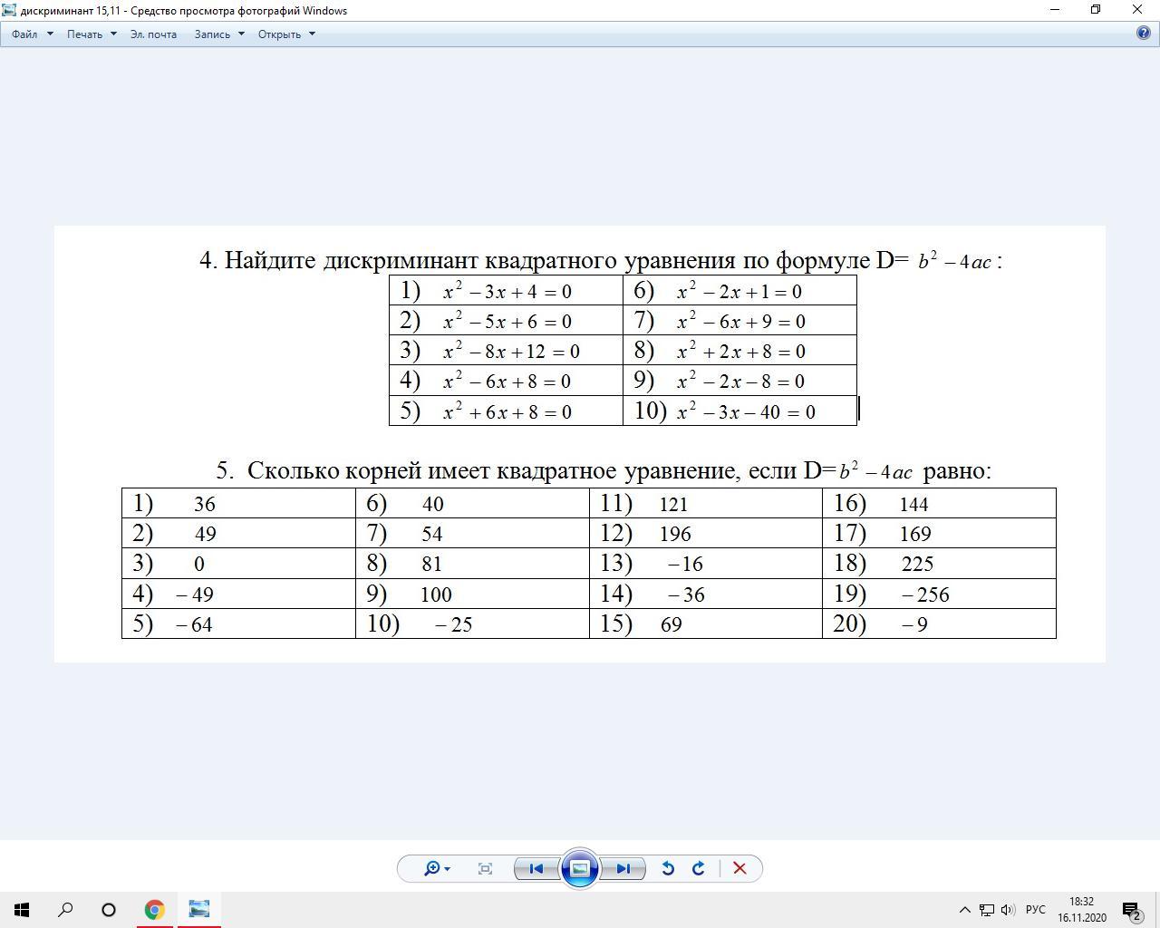 №4- Выписать коэффициенты кв.уравнения,затем вычислить дискриминант. №5-определить количество корней кв.уравнения