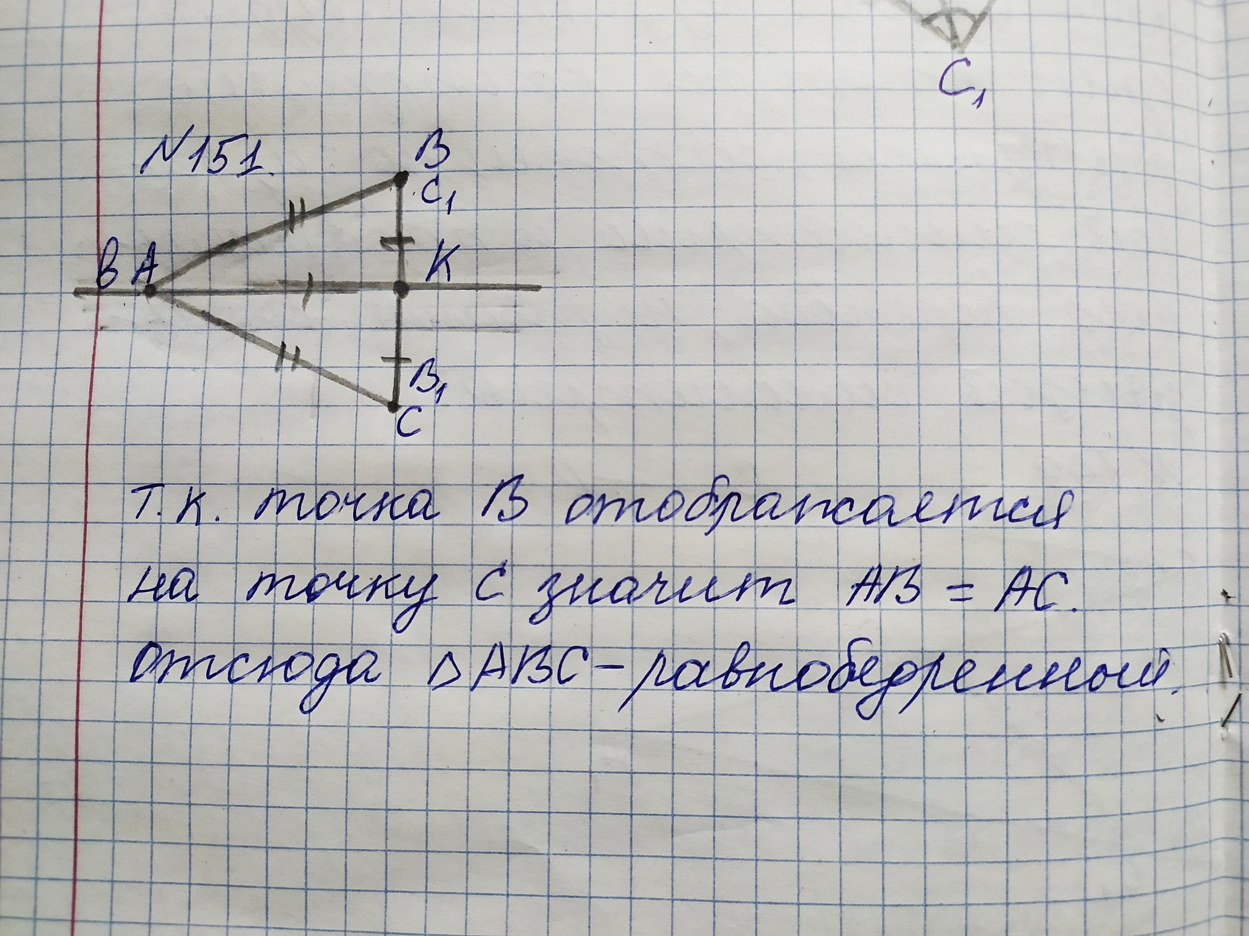 При симметрии относительно прямой проходящей через вершину А треугольника ABC, точка В отображается на точку С. Докажите, что треугольник АВС - раанобедренный.