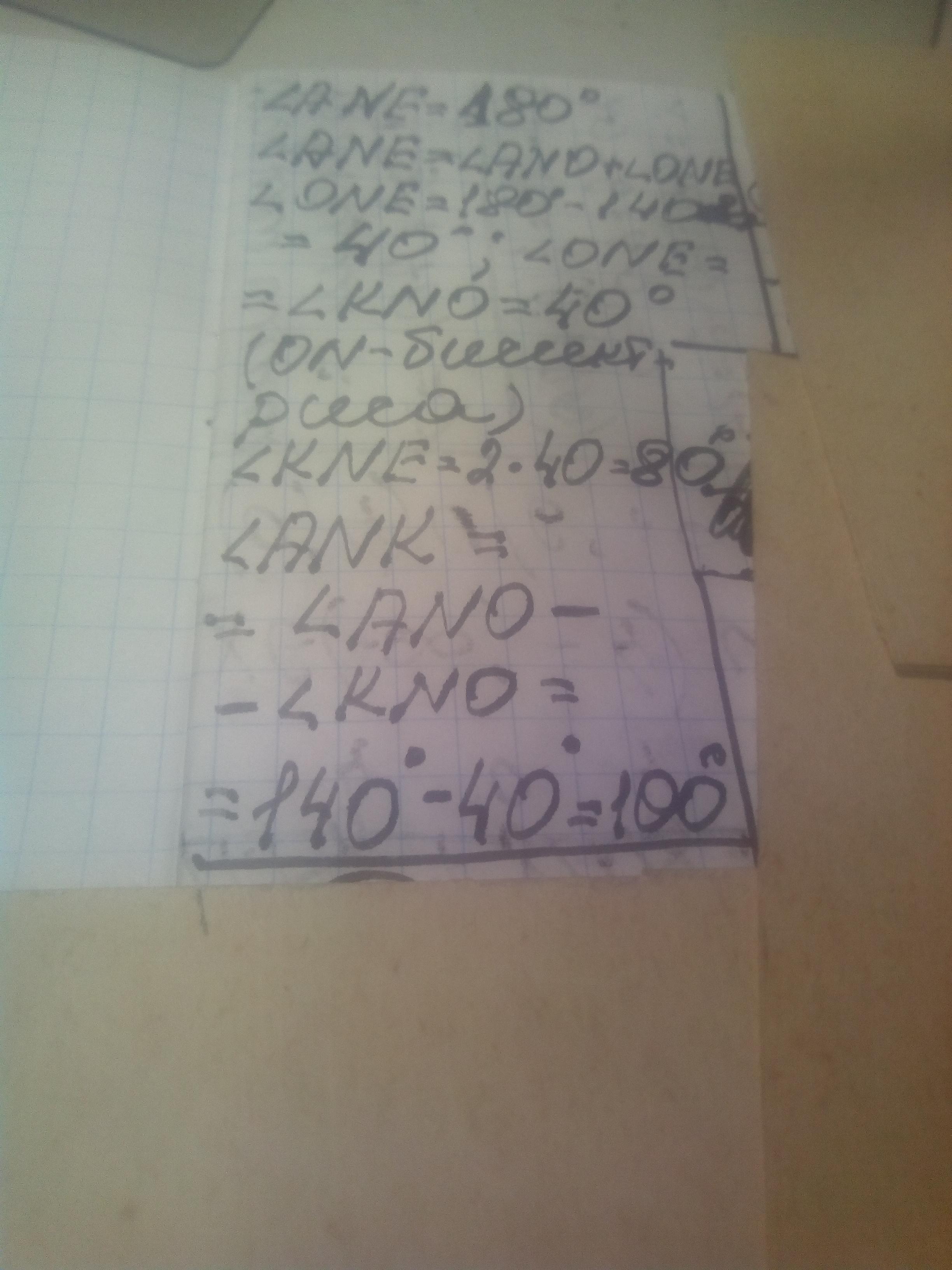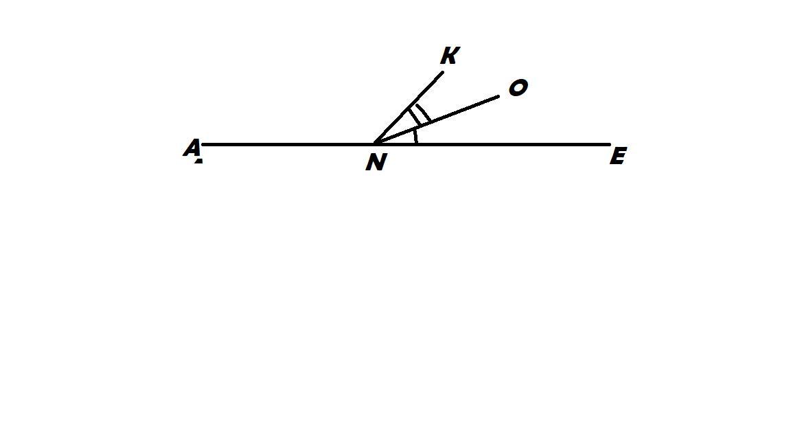 Дано: углANE - развернутый, NO- биссектриса. углANO = 140градусов. Найти углKNE, углANK