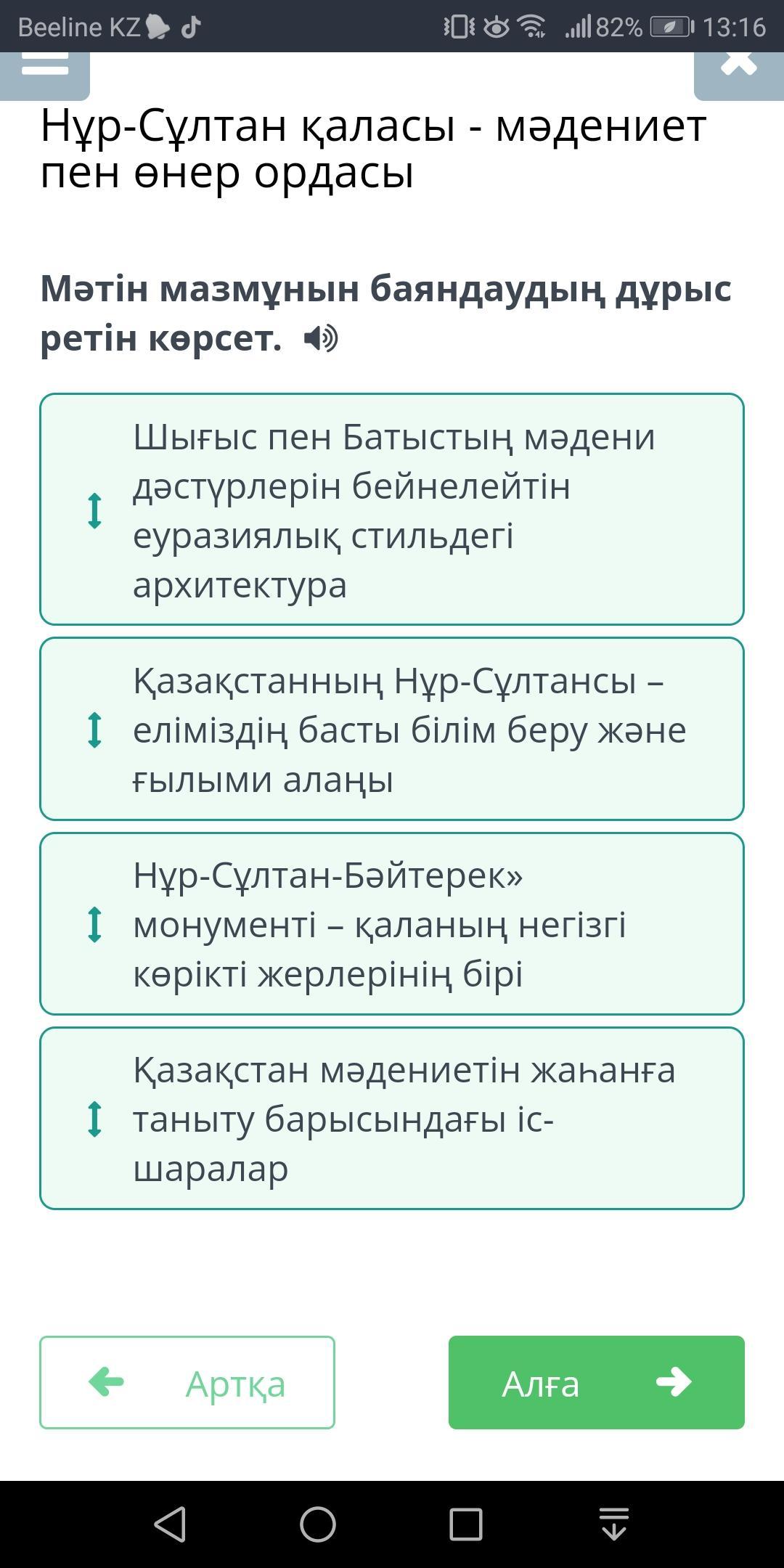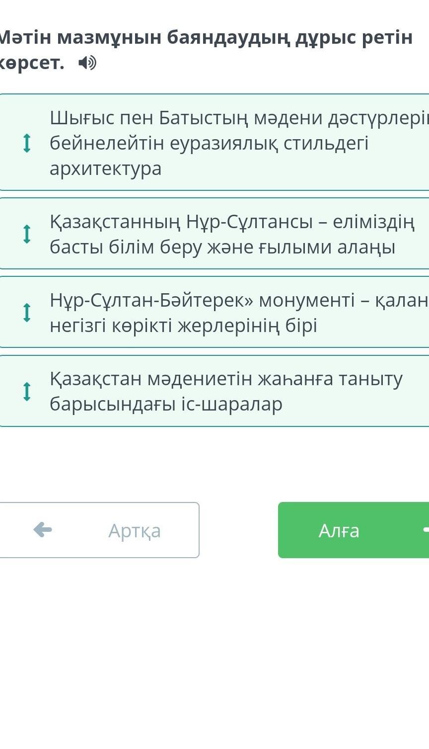 Мәтін мазмұнын баяндаудың дұрыс ретін көрсет.