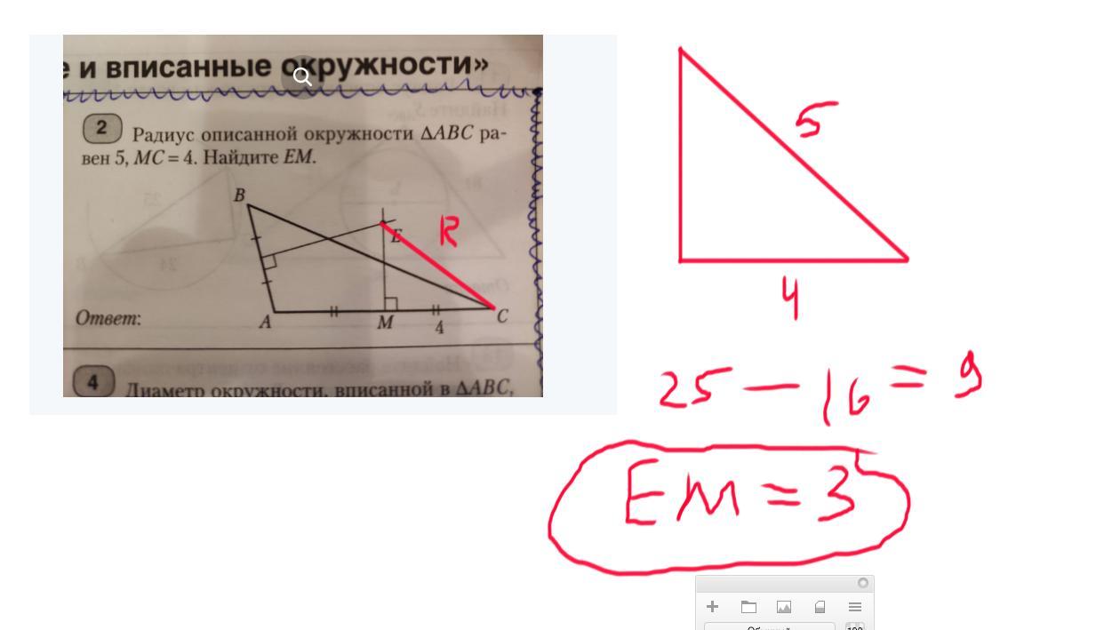воот знаем что центр описанной окружности находиться в точке пересечения серединных перпендекуляров следовательно точка Е-центр описанной окружности