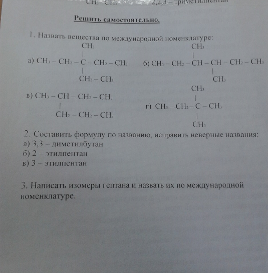 1. а) 3 метил-3 этилпентан, б)3,4диметилгексан, в) 2 пропилбутан, г) 3,3 диметилбутан.