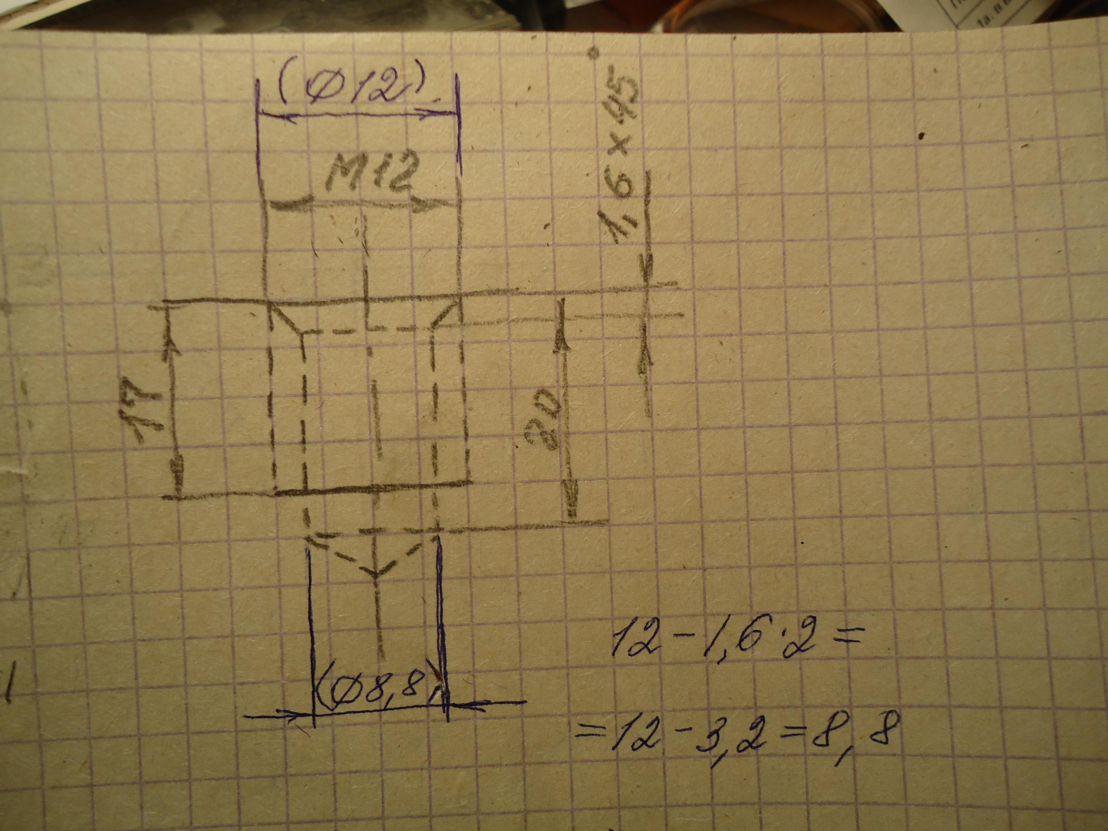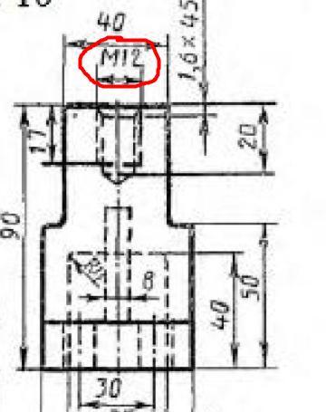 Я нанесла на верхнюю часть чертежа ручкой диаметр 12 для нанесения штриховой линии , относящейся к резьбе, и диаметр 8,8 , рассчитанный для штриховой линии, относящейся к отверстию.