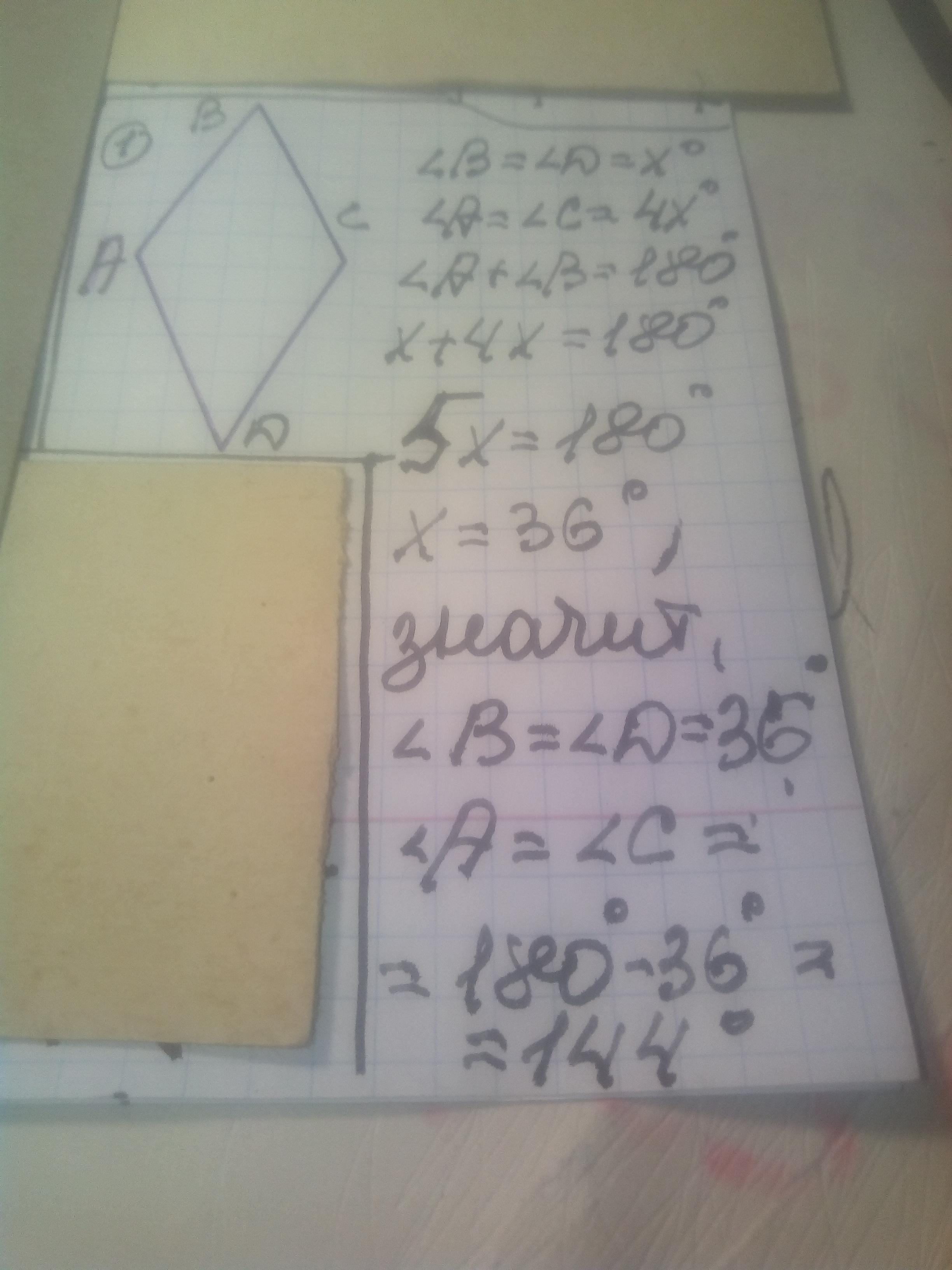 1)Знайдіть кут ромба якщо один з них у 4 рази більший за інший.