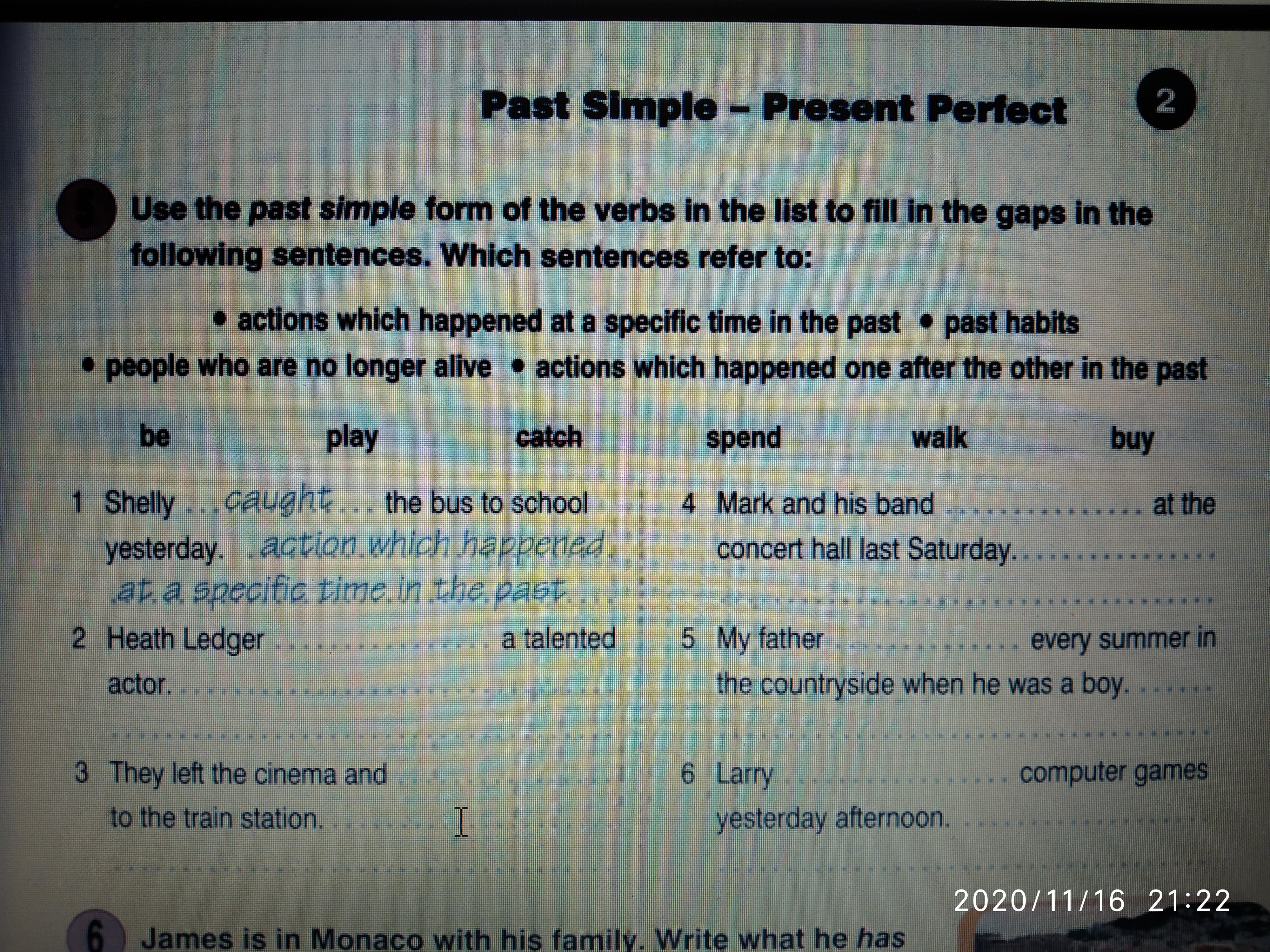 Use the past simple form of the verbs in the list to fill in the gaps in the following sentences. Which sentences refer to