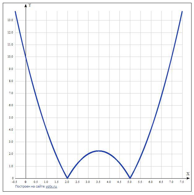4) График такой функции - парабола ветвями вверх, часть графика с отрицательными значениями перевёрнута в положительную полуплоскость.