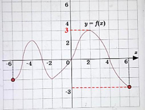 Область значений функции - это проекция графика функции на ось Оу. В данном задании проекция графика от -3 до 3.