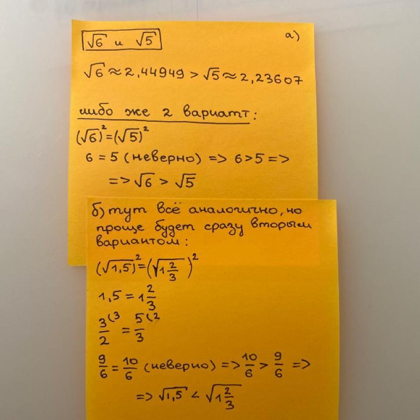 б) корень из полутора меньше, чем корень из одной целой двух третьих