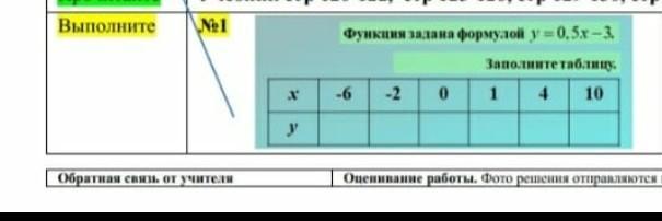 там если что, просто в место x (в этом месте—>y=0.5x-3) вставляем те цифры из таблицы, и получается такой пример "0.5*(-6)-3