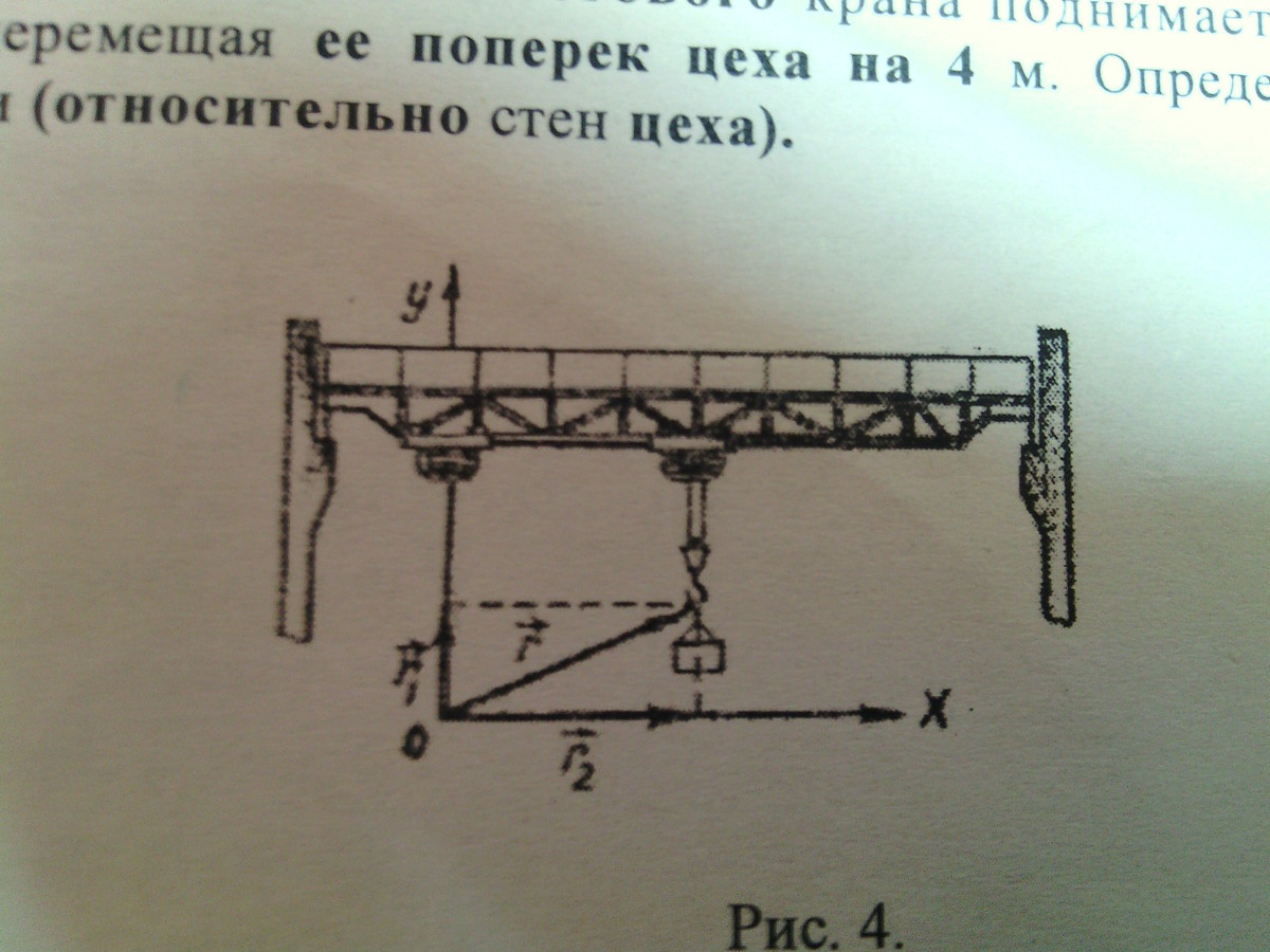 2. Машинист мостового крана поднимает деталь на высоту 3м, одновременно перемещая ее поперек цеха на 4м. Определите результирующее перемещение детали (относительно стен цеха).