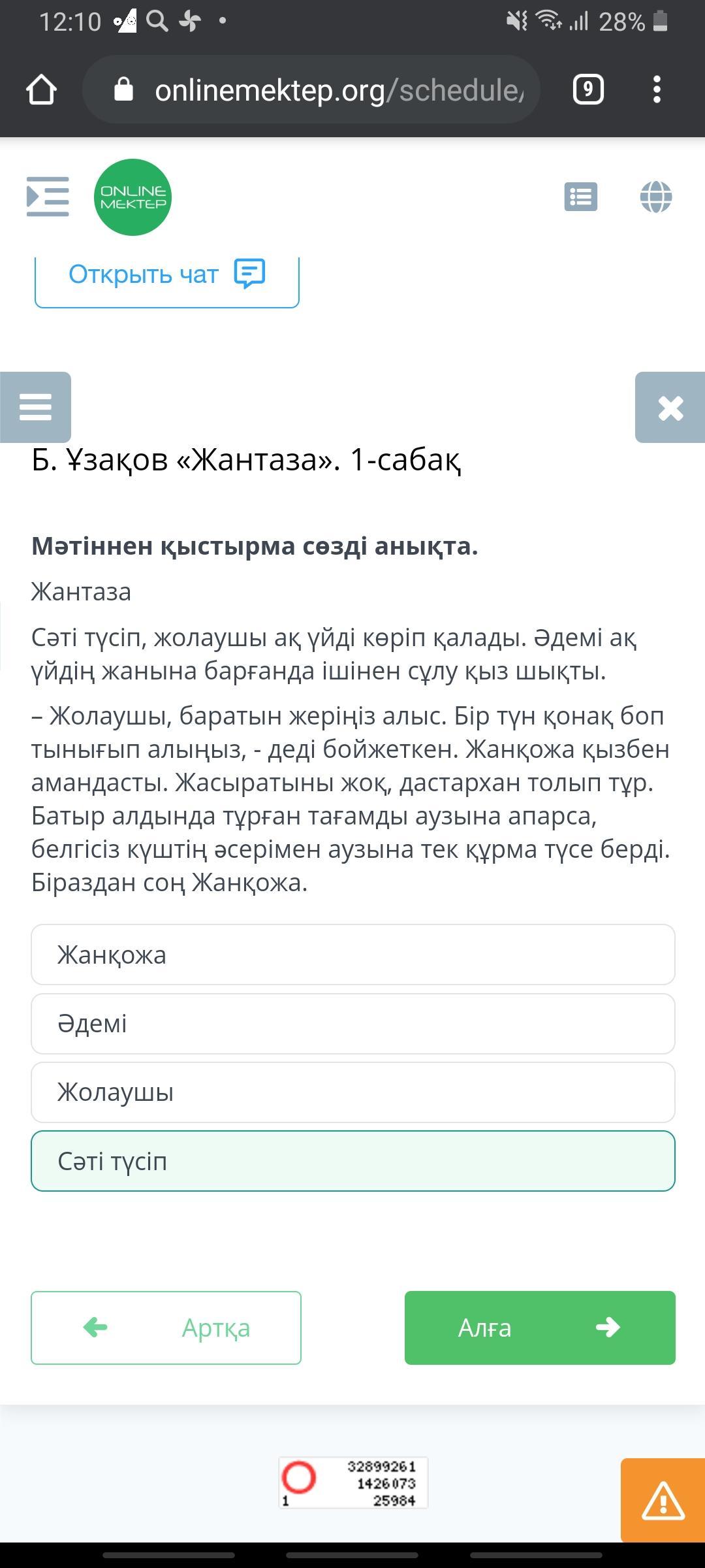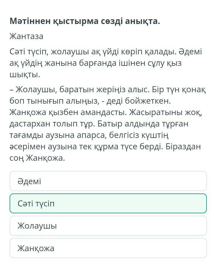 эм я не знаю но я другое отметил на рандоме и правильно вот: Жолаушы