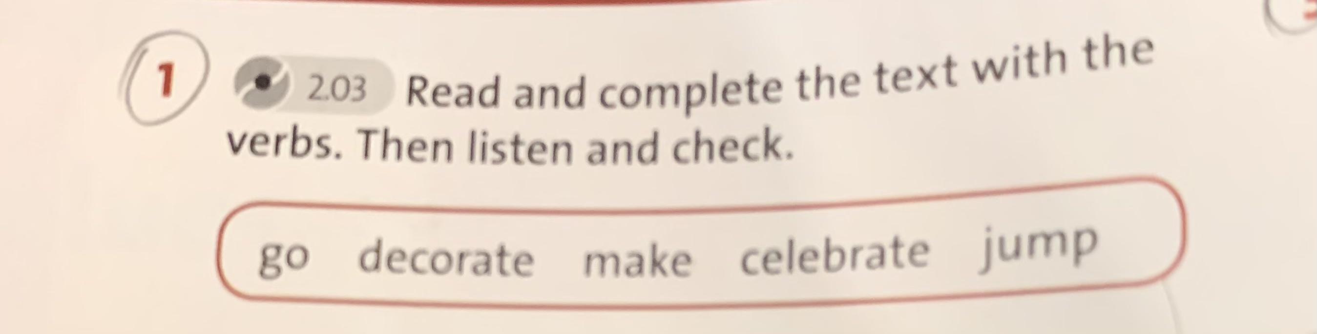 [1. read and complete the text with the verbs. Then listen and check: go decorate make calebrate jump] не поняла задание... желательно его сделать сразу