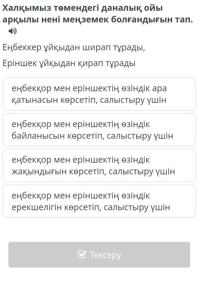 Халқымыз төмендегі даналық ойы арқылы нені меңземек болғандығын тап.