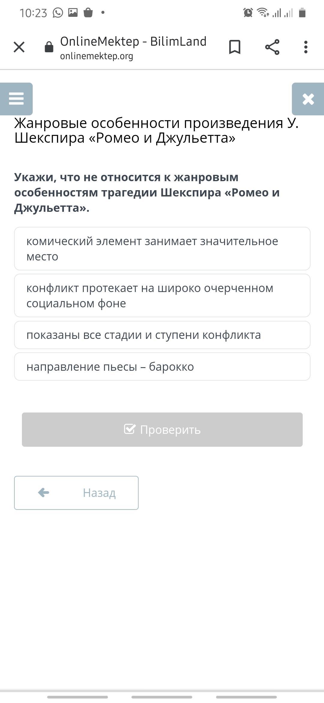 Укажи, что не относится к жанровым особенностям трагедии Шекспира «Ромео и Джульетта».