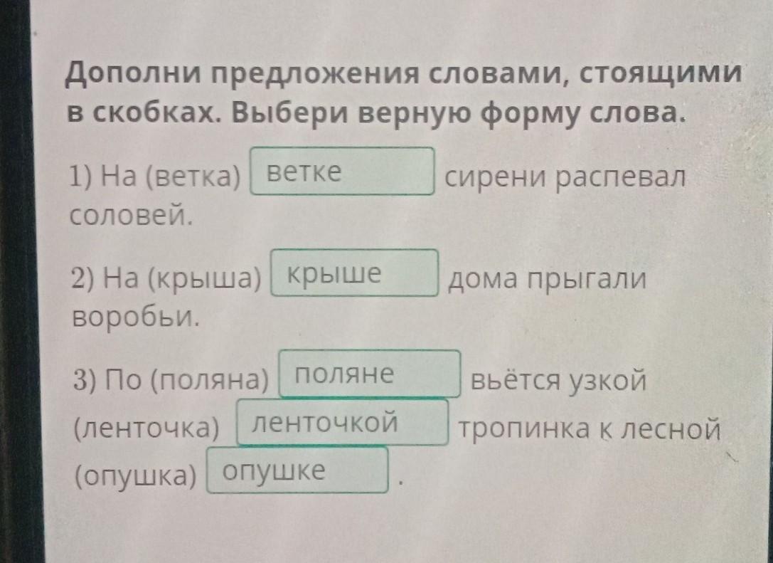 Дополни предложения словами, стоящими в скобках. Выбери верную форму слова.