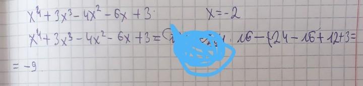 x4 + 3x3 - 4x² - 6x + 3 при х=-2 помогите пожалуйста