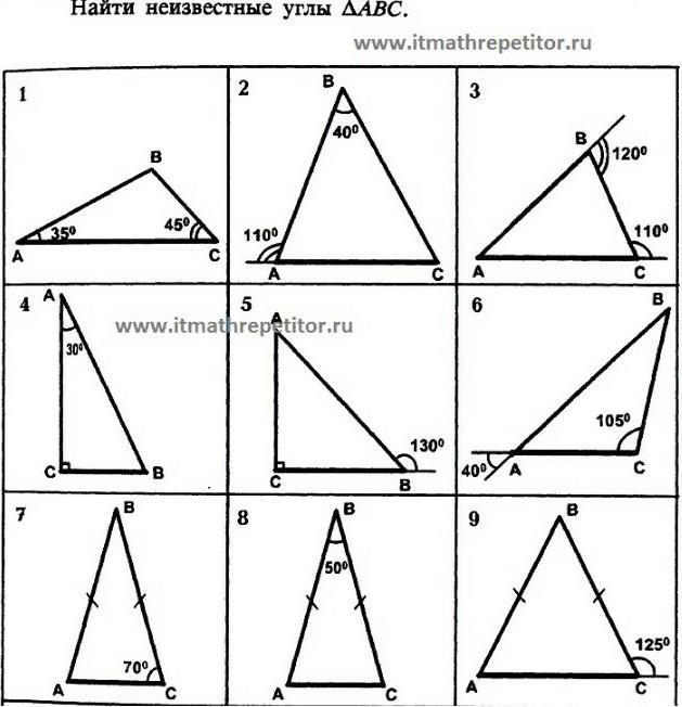 Сумма углов треугольника=180