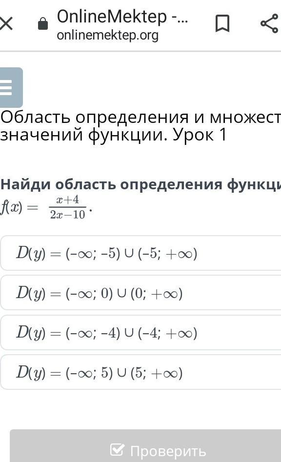 D(y) = (–∞; 5) ∪ (5; +∞)