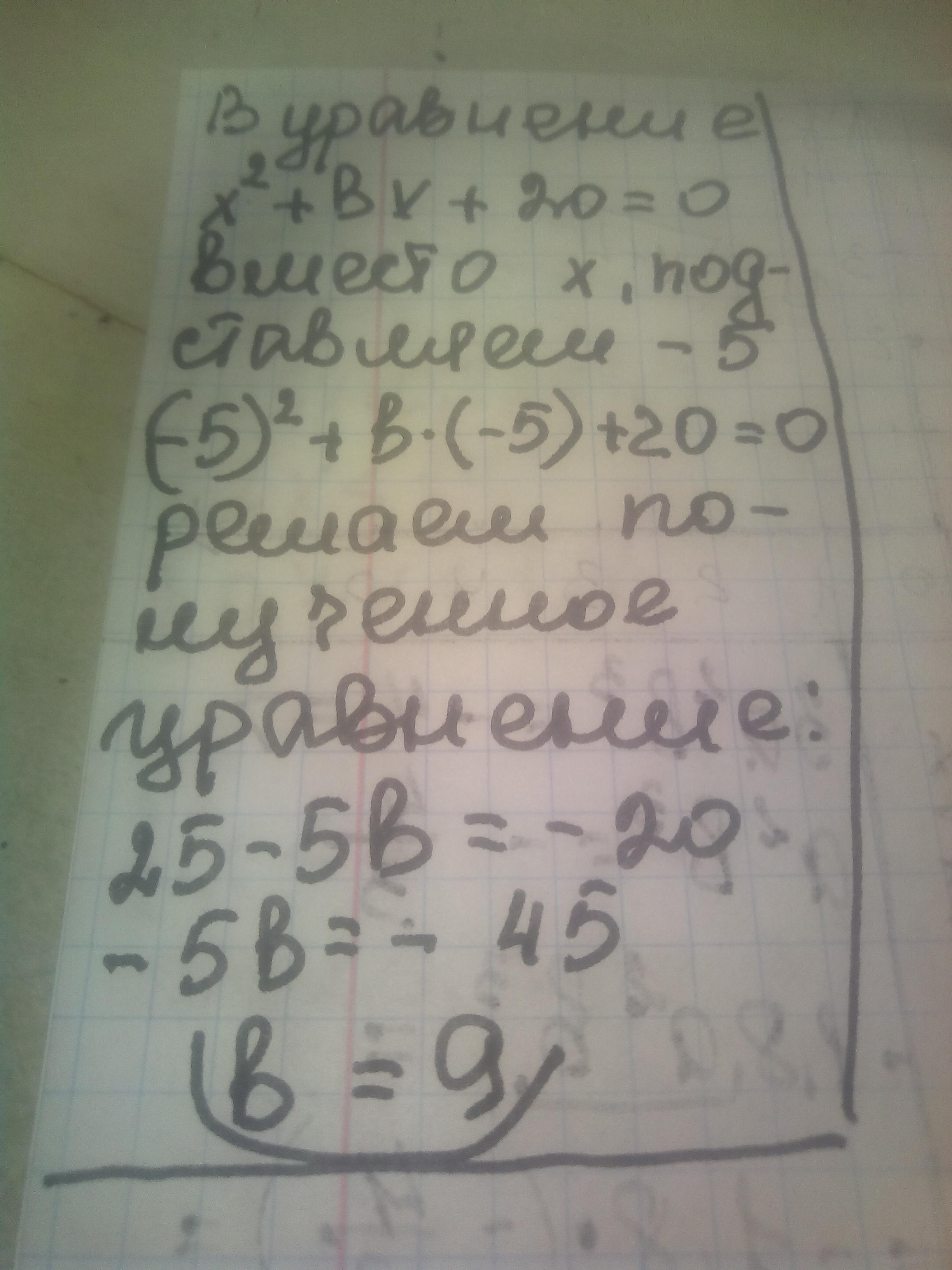 Найди значение b, если известен корень x1 = –5 уравнения x2 + bx + 20 = 0.