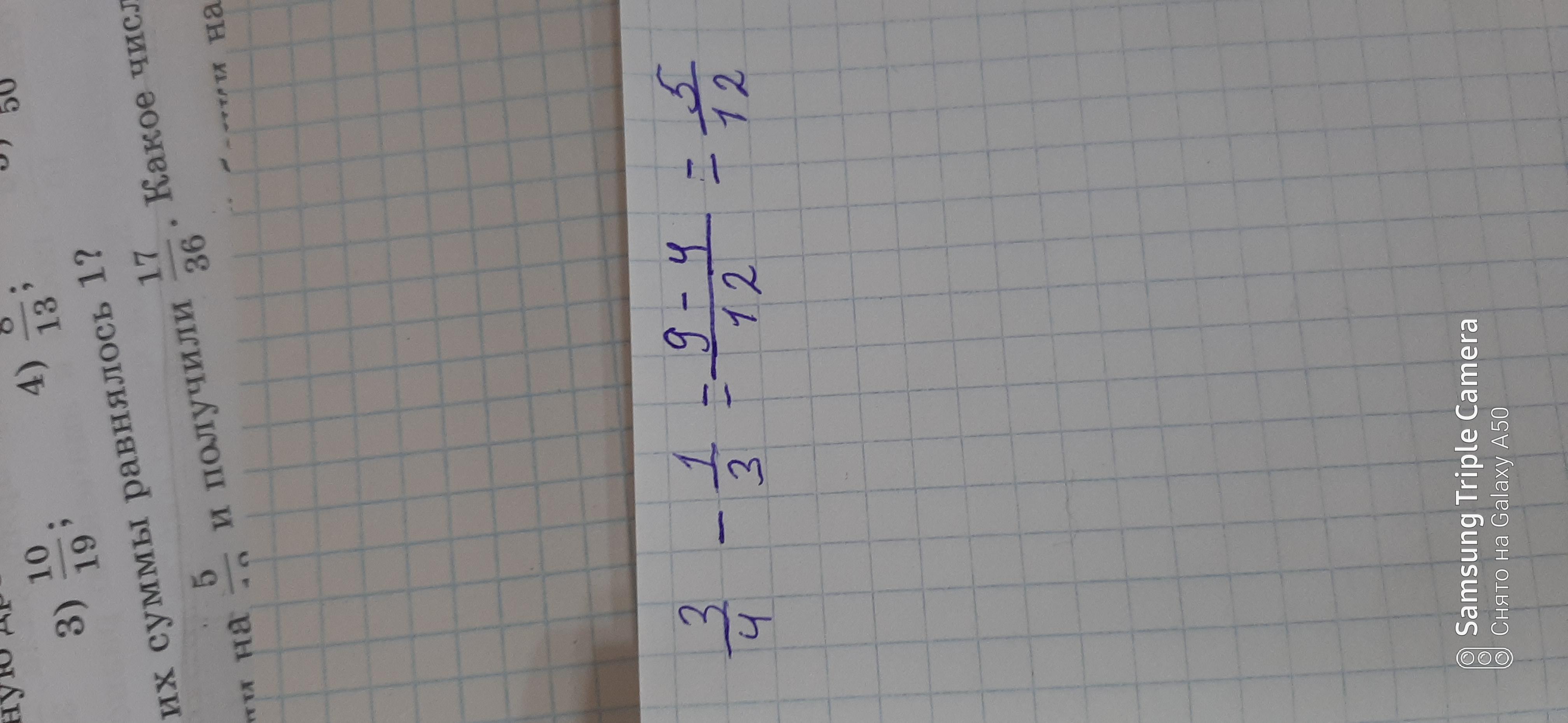 3/4 - 1/3 = 9-4/12