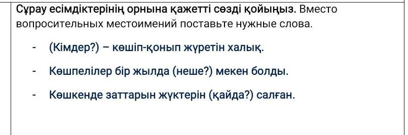 Cұрау есімдіктерінің орнына қажетті сөзді қойыңыз.