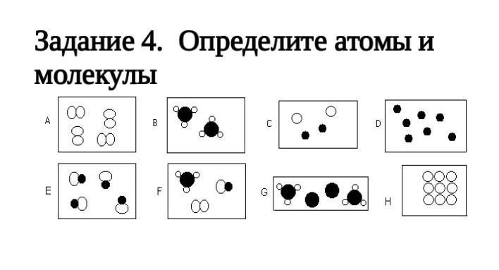 Определите атомы и молекулы