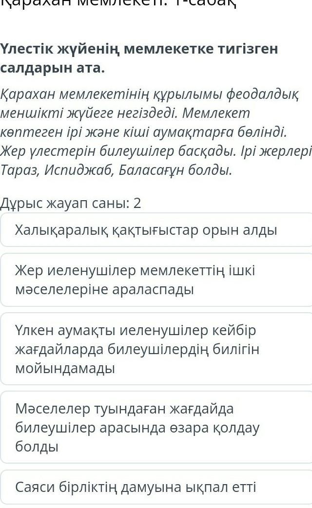 Халықаралық қақтығыстар орын алды.Саяси бірліктің дамуына ықпал етті